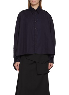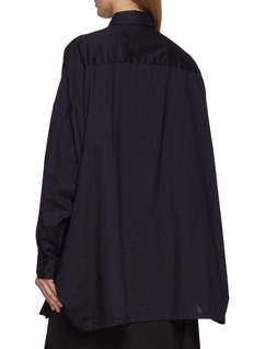 Crisp lines meet an oversized ease in this cotton shirt, shaped with a softly dropped shoulder and a subtly sculpted back yoke. Y’s elevates the everyday essential through its generous, fluid volume—perfect for grounding wide-leg trousers or layering over structured skirts for contrast.