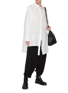 著名设计师 Yohji Yamamoto (山本耀司) 于 1972 年推出了他的第一个服装系列, Y's 。从不对称的剪裁,去线条化的轮廓,细腻独特的质地,到设计中对身体和服装之间空白间隙的考量以及暗色系色彩,都弥漫着设计师对时尚的“愤怒”与”反抗“。这款针织衫以宽松版型融合不对称设计带来独树一帜的穿搭格调。