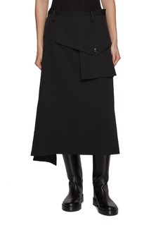 Y's 以去线条化轮廓与身体留白为设计内核,风格中性松弛。这款半身裙裙以不对称搭片剪裁打破规整,单扣细节点缀随性空隙,搭配修身内搭与靴装,塑造日系简约中性造型。
