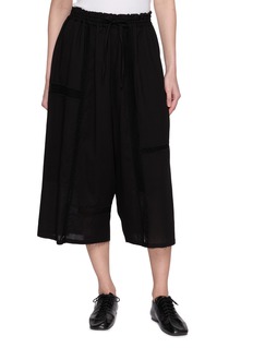 Relaxed tailoring meets subtle craftsmanship in these gathered pants from Y’s. Designed with a softly voluminous silhouette, delicate lace trims run along the panels to create understated texture and depth. The elasticated drawstring waistband ensures ease, making them an effortless option for everyday styling.
