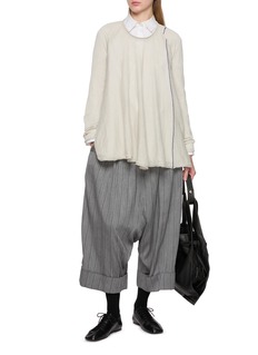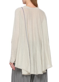 A weightless expression of Y’s poetic ease, this A-line top drapes with quiet fluidity in a semi-sheer linen blend. A single contrast stitch skims the body, adding a subtle line of tension to its soft silhouette. Pair with pleated skirts or wide trousers to emphasise its gentle movement.