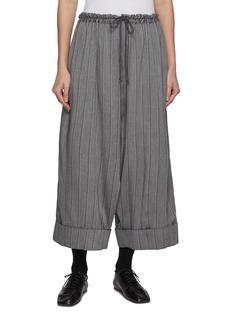 Y's 以去线条化轮廓与身体留白为设计核心,风格松弛中性。这款长裤以抽绳营造褶皱空隙,阔腿剪裁释放身体空间,搭配修身内搭与皮鞋,演绎日系松弛中性格调。