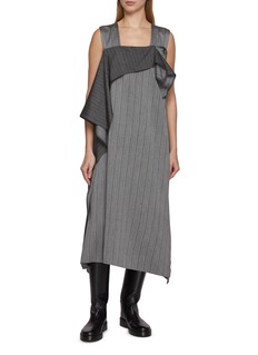 Y's 以去线条化轮廓与留白考量重塑服装形态,风格中性而细腻。这款背带裙采用不对称剪裁,宽肩带设计松弛随性,下摆错落呈现自然空隙,内搭白衬衫与靴装,演绎日系简约中性风。