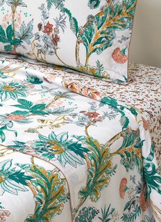 Yves Delorme 的 Golestan 系列发明了一种梦幻般的装饰,风格化的花朵在茎上起伏,营造出秘密花园的装饰图案,就像漫步在华丽的宫殿中。