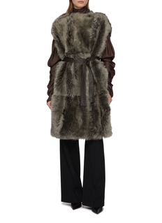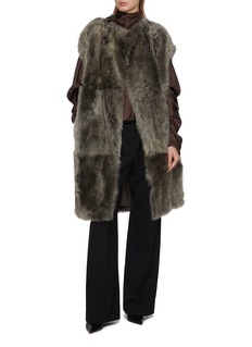 Step out in undeniable luxury with Yves Salomon's exquisite fur gilet, crafted in a striking charcoal grey. This lavish piece features sumptuous fur that offers unmatched warmth and a plush feel, ensuring you stay comfortably chic in the colder months. The coat is elegantly cinched at the waist with a sleek leather belt, highlighting a flattering silhouette while adding a touch of refined sophistication. Ideal for those who covet timeless style and tactile luxury.