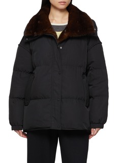 Urban armour with a plush feel. Cut to a relaxed silhouette, this technical puffer boasts a mink fur hood for a luxurious touch. Lightweight yet cocooning, it moves from city commutes to alpine weekends.