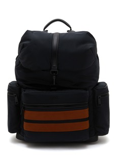 This Zegna backpack combines stylish utility with robust design. Featuring a deep black hue complemented by distinctive orange stripes, it’s built for both daily commutes and adventurous getaways.