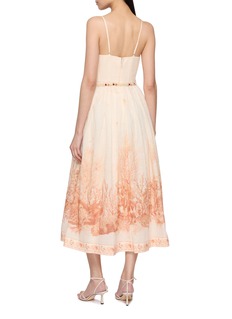 Zimmermann 凭借出众的版型和精致细节令每件单品都散发出独特的女性韵味。这款棉质中长裙采用结构化胸衣设计,配以弧度领口、收腰褶皱及蓬松裙摆,不妨搭配一双拉带高跟凉鞋。